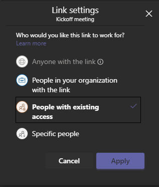 Please note: Only the meeting organizer or file owner can manage sharing permissions. |